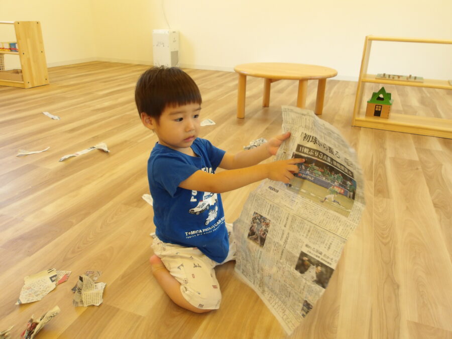 ビリビリと破ったり、くしゃくしゃっと丸めたり感触を楽しむ子どもたちでした📰