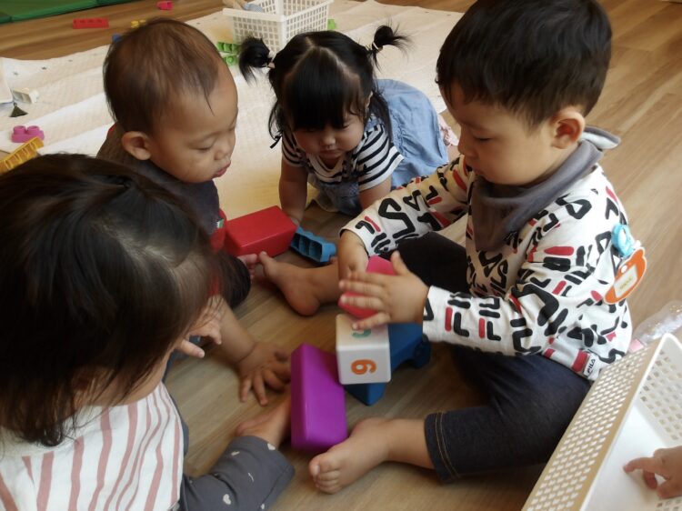 お部屋では保育者のお膝の上でゆったり過ごしたり、集中してブロックや積み木を組み立てたりして過ごしましたよ。