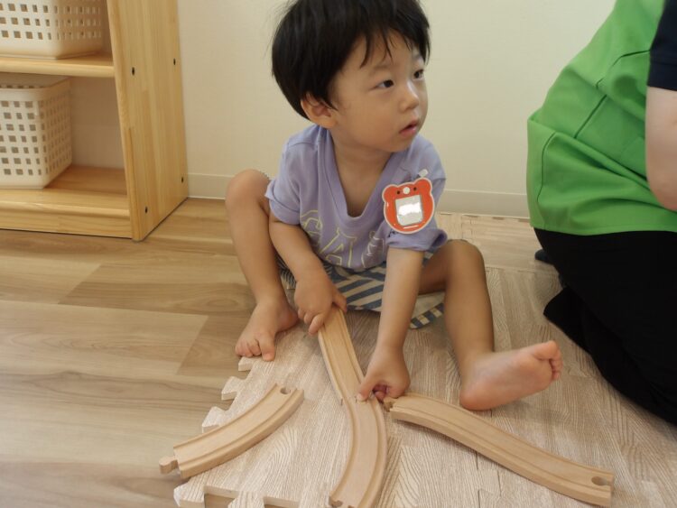 お友だちと協力して、長くしたり電車を貸し借りして楽しむ姿が見られました👏
