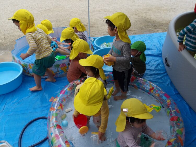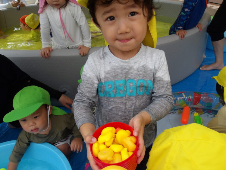 ひよこ組のお友だちは、ジョウロやシャワーの水をつかもうと手を伸ばす姿が見られます🤭少しずつ慣れてきたようで、楽しそうな笑顔を見せてくれます🎶
