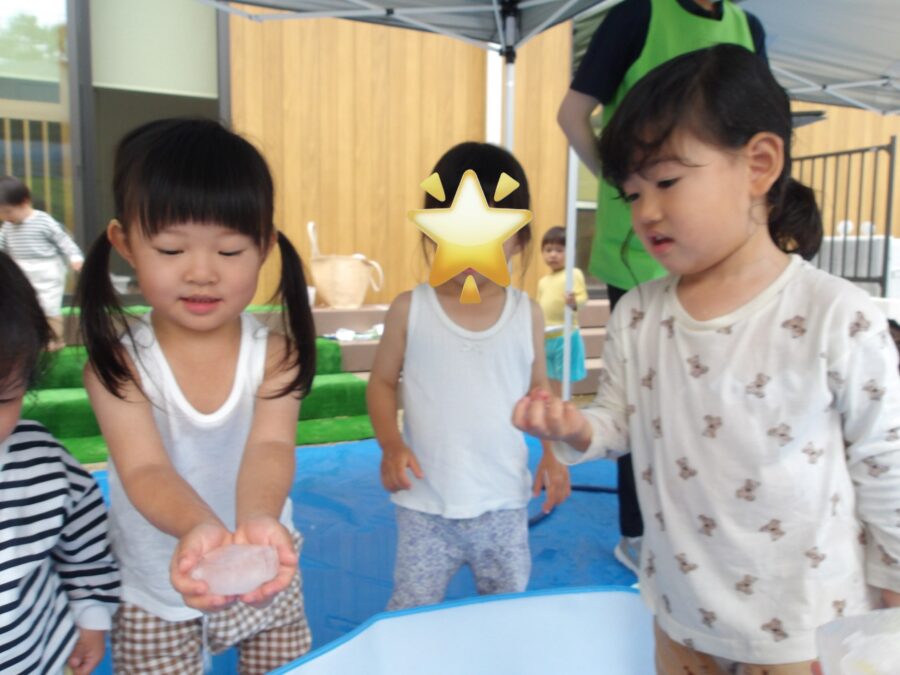 「みてみて」と氷を見せてくれました。触るとひんやり冷たくて気持ちいいね🌟