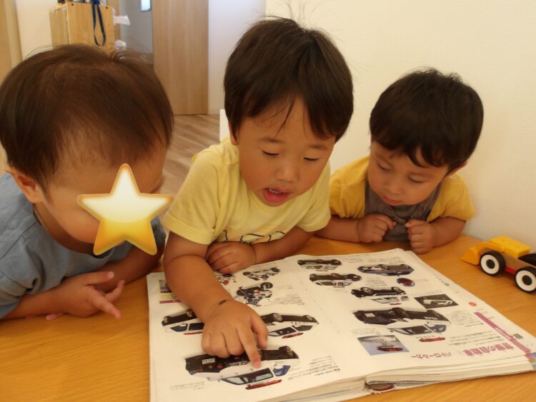 乗り物や恐竜図鑑を、友達と仲良くみる姿がよく見られます😌