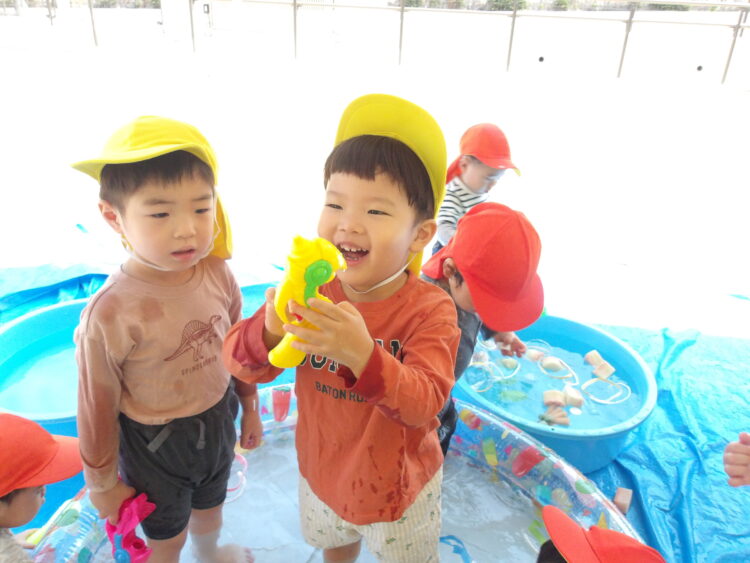 水鉄砲を使っている子は、保育者やお友達をねらっていましたよ🤭