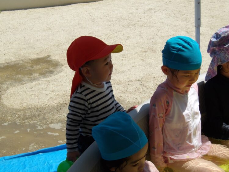 にじ組たいよう組のお兄さんお姉さんが出てくると、大きなプールに入りたそうに眺める姿が可愛らしかったです🥰