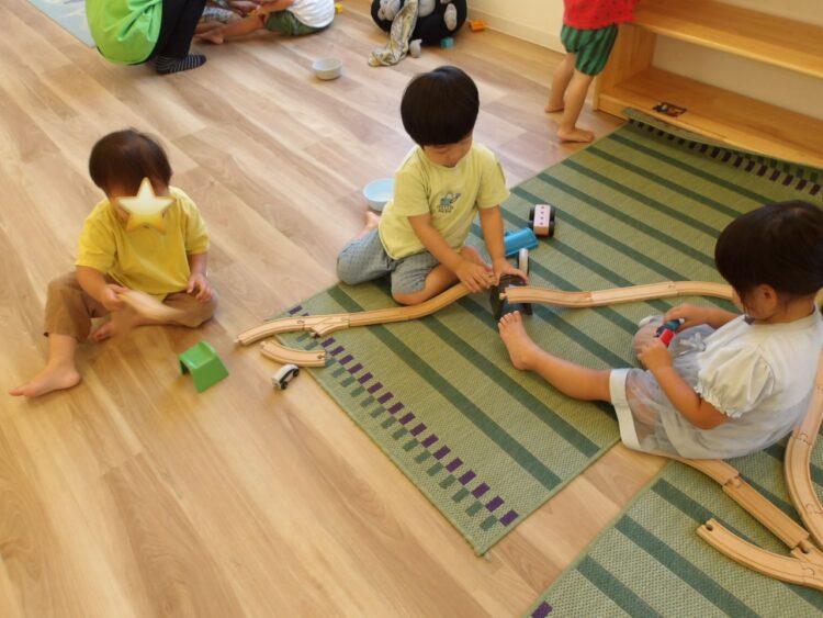 お部屋では、お友だちと協力して線路を長く繋げていました✨