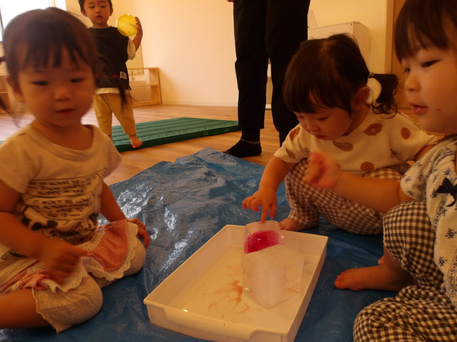 氷遊び🧊 今日も暑い日でしたね☀️ 今日は、お外やお部屋で氷遊びをしました。 ヒンヤリ気持ちよくて感触を楽しんでいました🌟 来週も元気に来てね🌟 カテゴリ: 長久手(0〜1歳), 長久手(2〜3歳) タグ: