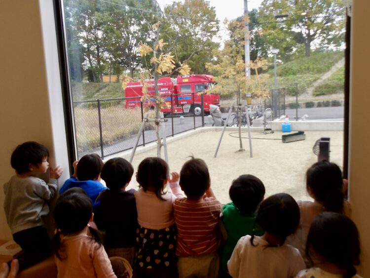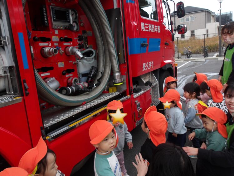 保育園に大きな消防車が停まりました🚒