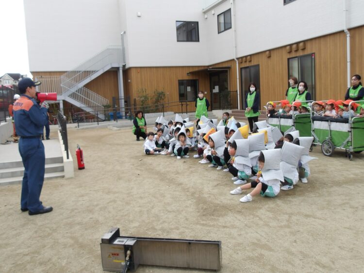 今日は防災訓練の日。実際に避難訓練をして、火事で避難する際に大切なお約束ごとを消防士さんから聞くことが出来ました。