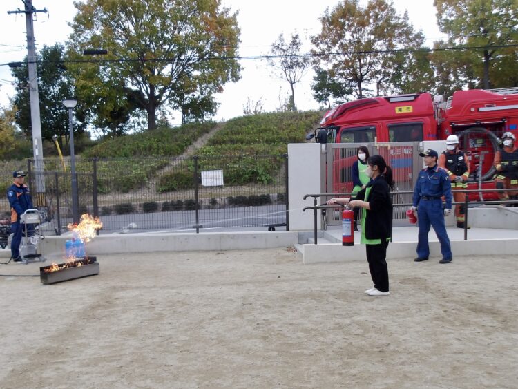 本物の消火訓練を見学したりもして、いつもとは違い臨場感のある訓練になりました。