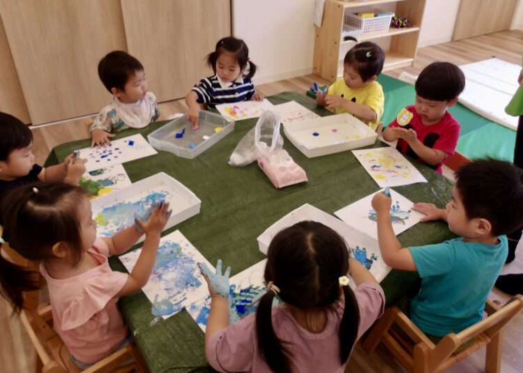 同じ絵の具、同じ紙でも子どもたちの表現は色々。