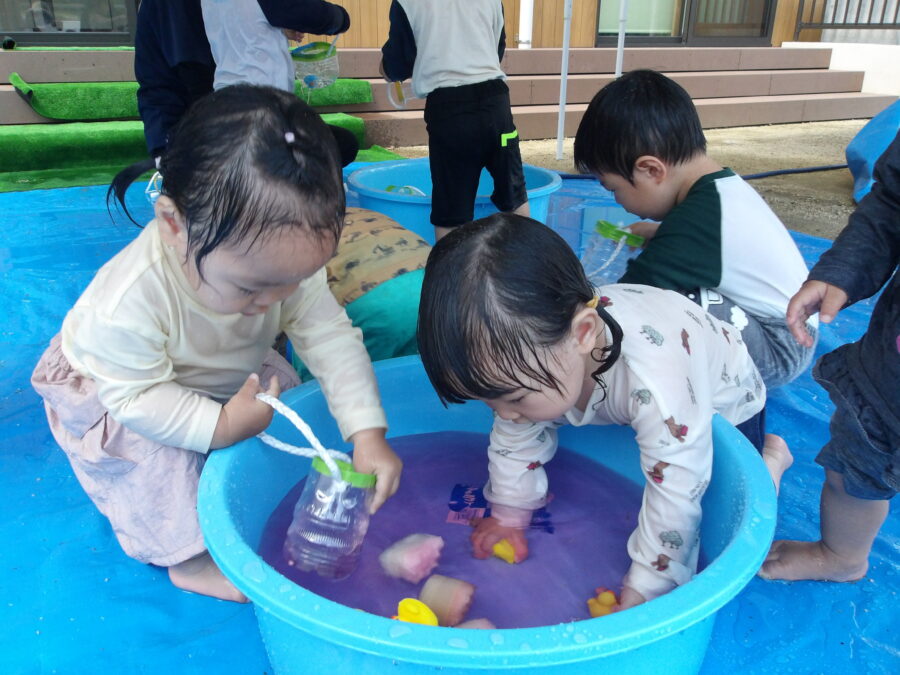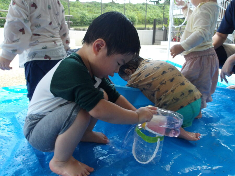 色も3色あり好きな色の色水で遊びました。