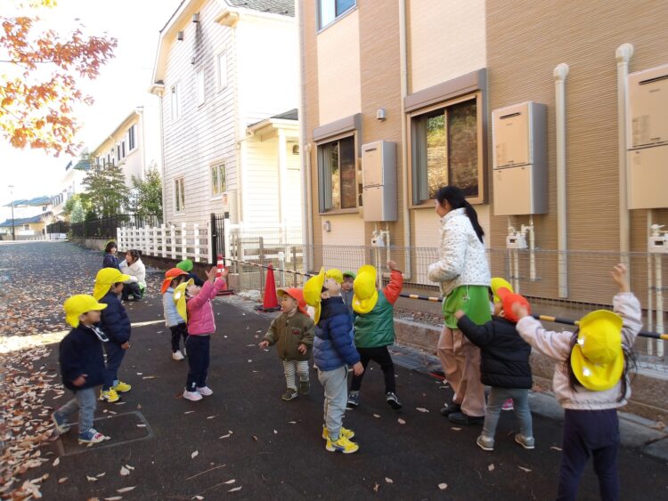落ちてくる葉っぱに大興奮の子どもたち🍂