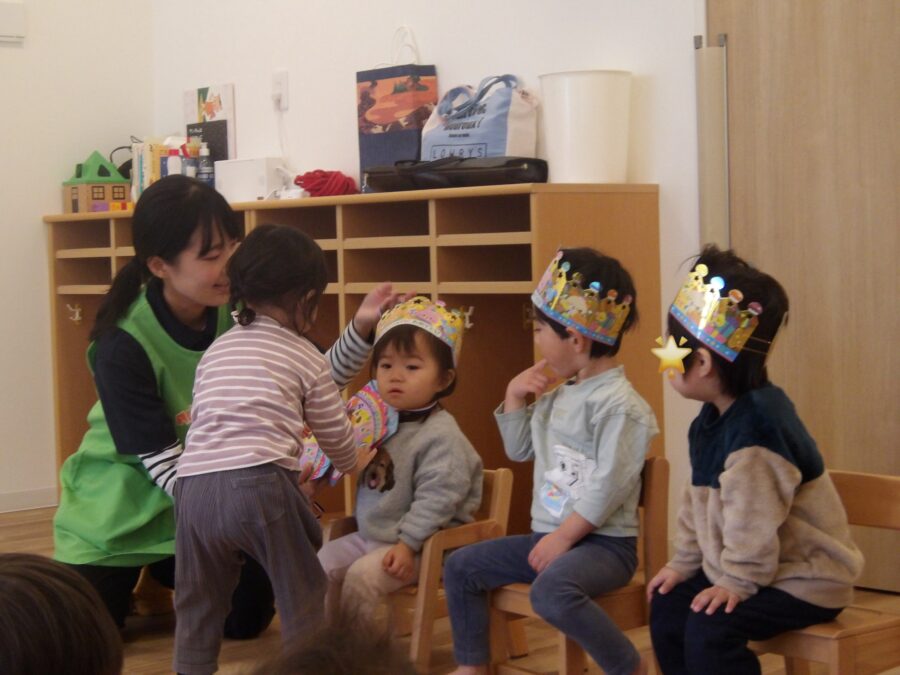 12月生まれのお友だちを紹介しようとすると、普段同じお部屋じゃないお友だちの名前もばっちり覚えている子どもたちは、「〇〇ちゃん!」と名前を呼んでくれていました!