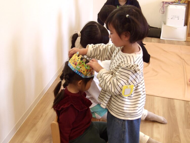 冠とカードのプレゼントをする時間がみんな大好きです。