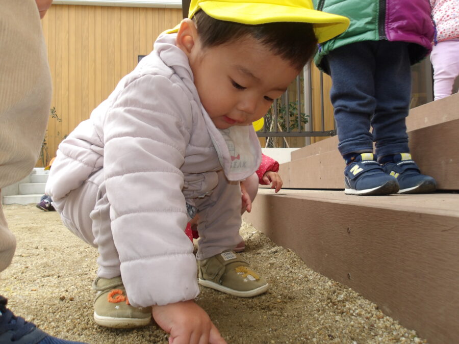 今日は園庭に少しだけ雪を探しに行きました!