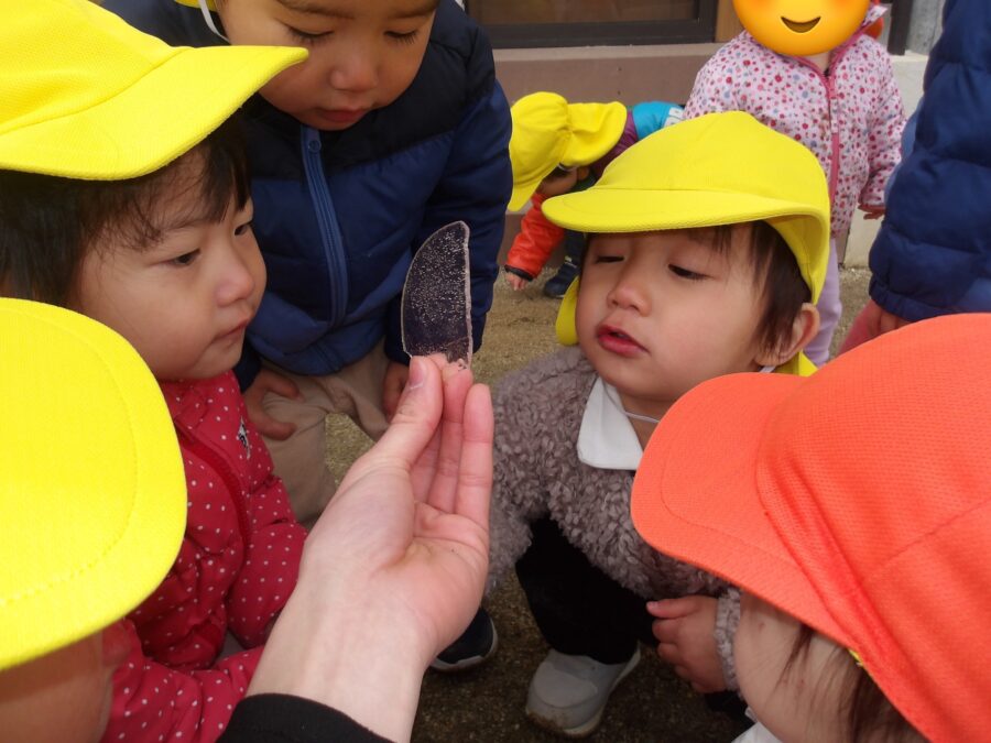 お兄さんお姉さん達が実験で作っていた氷を借りるとみんなで観察しましたよ👀✨