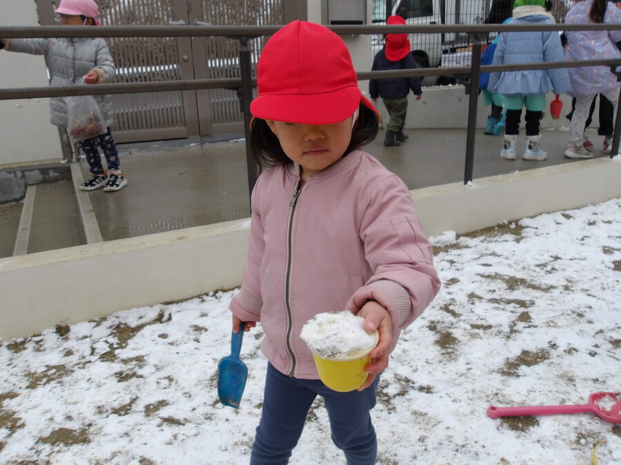 先生見てー! アイス作ったよ🍨 雪のアイスクリーム召し上がれ❄️園庭ではお部屋の雪だるまより大きな雪だるまを作っていました今日は雪の日を存分に楽しんだ子供達でした
