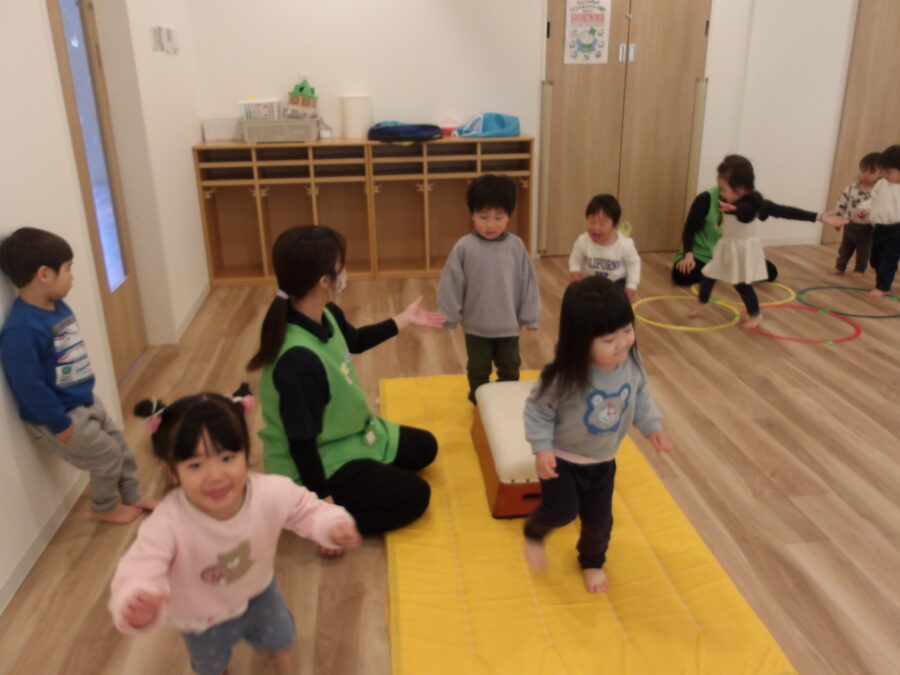 跳び箱からジャンプや、トンネル、輪っかの中を上手にジャンプして遊びました☺️