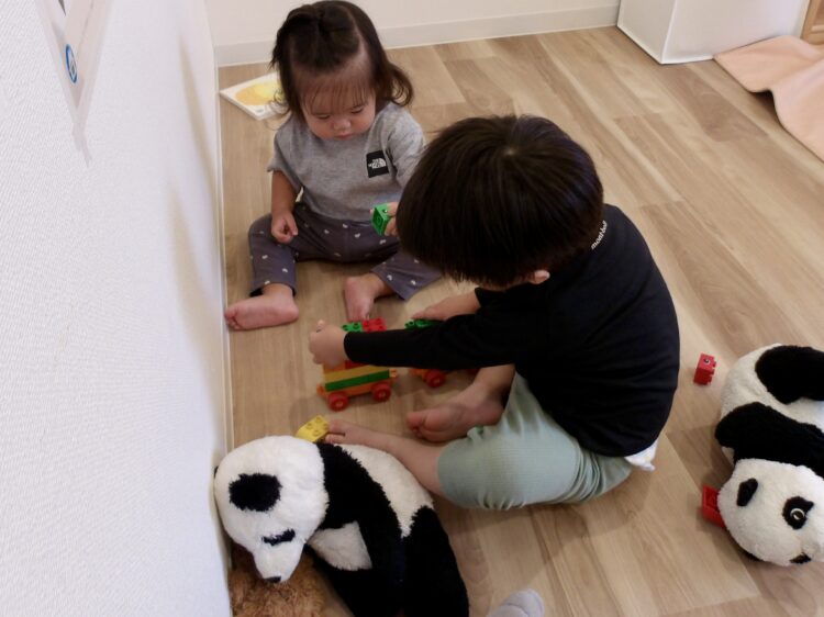 連休中楽しくあそんで、元気に登園してきてくれた子どもたち。今日はあいにくのお天気でしたがお部屋で楽しく遊びました。