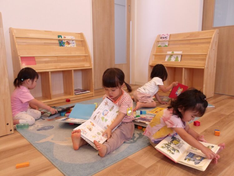 絵本コーナーでは、図鑑を見たり保育者と一緒に絵本を楽しんだりする姿が見られましたよ📖