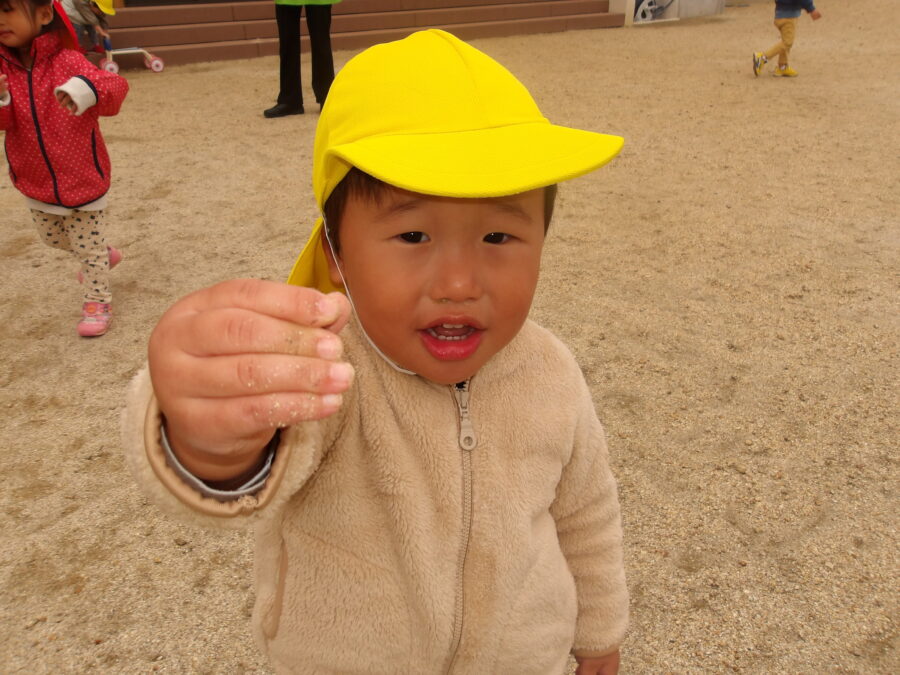 ピクニックで拾ってきたどんぐり🌰が落ちていたようで嬉しそうに見せてくれました☺️