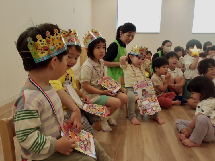 みんなに「おめでとうー!」とお祝いしてもらい、少し緊張しながらも嬉しそうな表情を見せてくれた子どもたちでした。