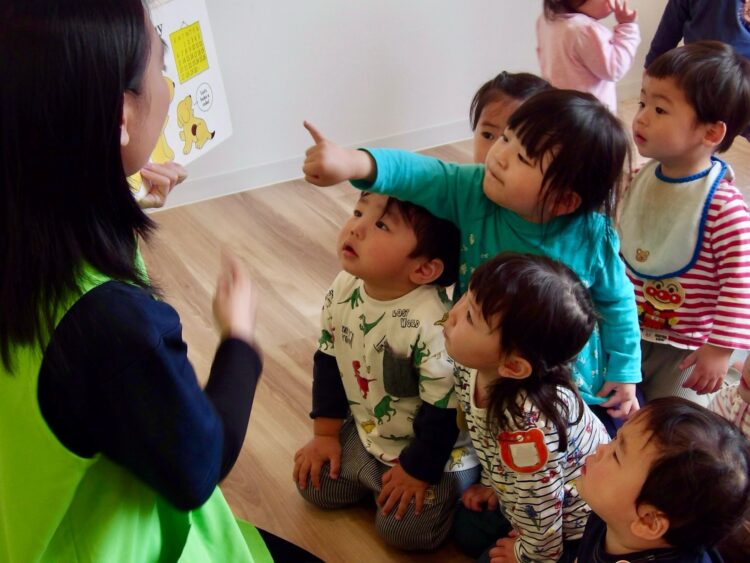 イングリッシュタイムでは、集中して参加するうちに、お気に入りの歌や物語が増えて来た子どもたち。