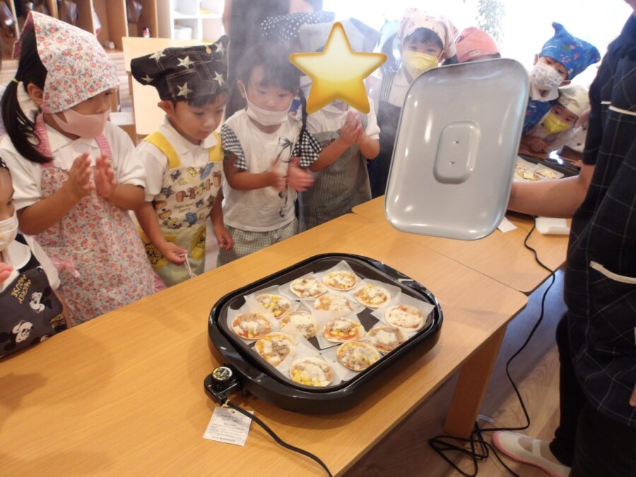 今日は、クックライフの社長さんが来てくださり、みんなで餃子ピザ🍕を作りました☺️