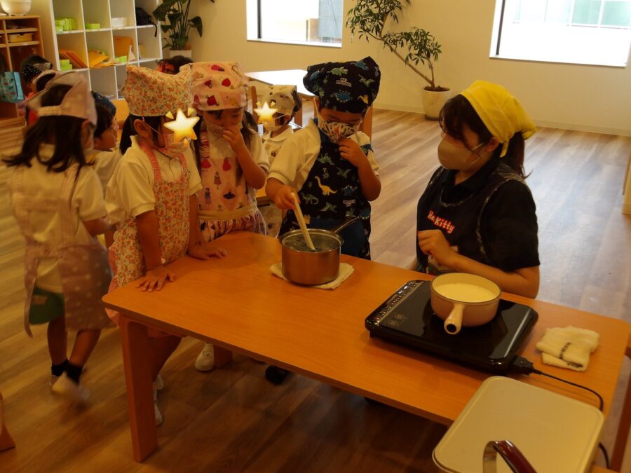 牛乳のお鍋もゆっくり、ぐるぐる。