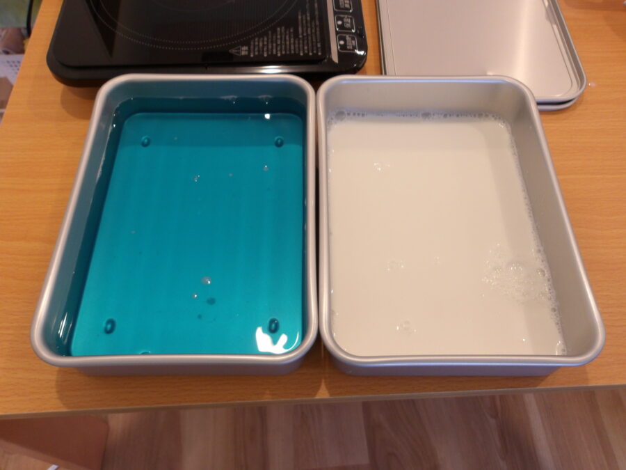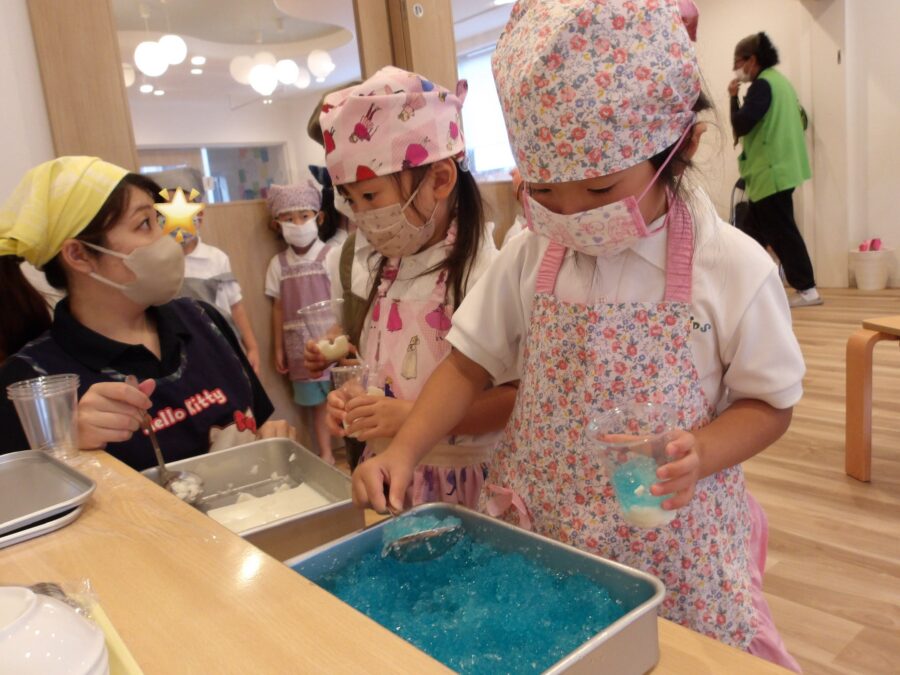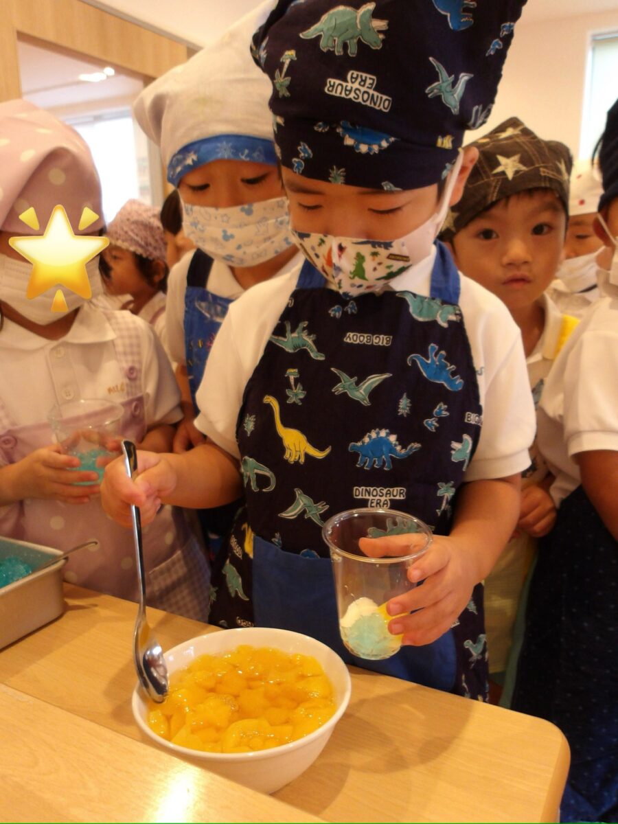 最後は保育者がバットにゼリー液を移して、一旦完成!✨