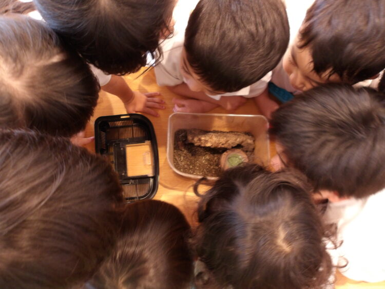 朝の会とEnglish Timeが終わると、みんなクワガタに釘付け👀