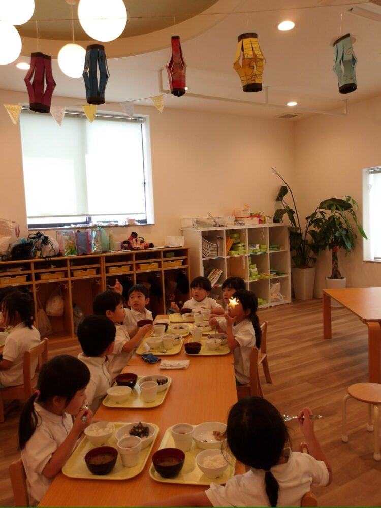 今日、久しぶりに登園した子はお部屋の提灯を嬉しそうに見上げて、