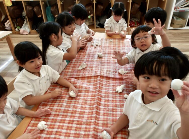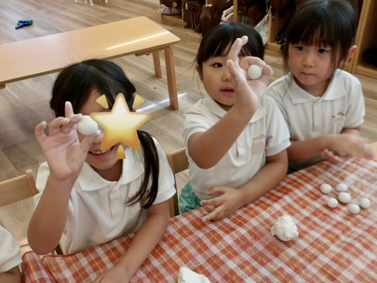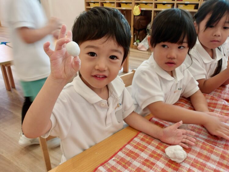 自分で粘土の量を調整して、思い通りの大きさのお団子を作っていましたよ。