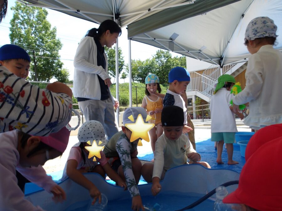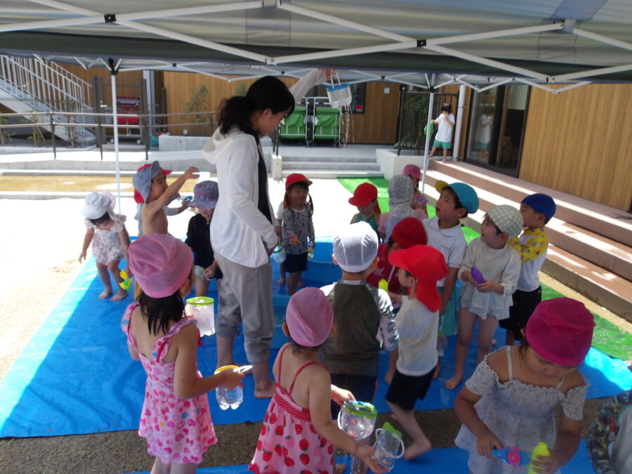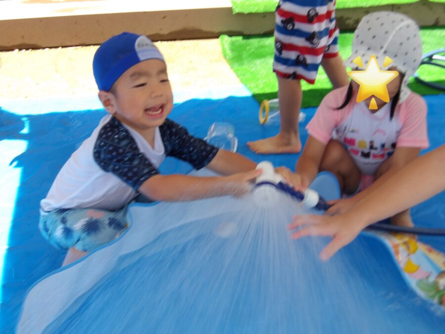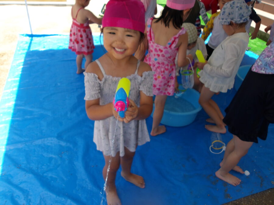 水鉄砲🔫を使って遊んだり、、、お友だちと掛け合いっこをしたりと思い思いに楽しんでいる姿が見られました!