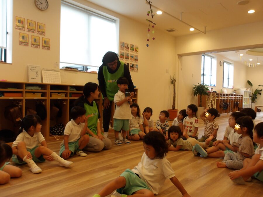 昨日の帰りの会で「明日からお客さんが来るよ」と伝えると、「誰が来るの」と保育者に尋ねたり、「明日保育園来る?」とお迎えに来る友だちのお父さん・お母さんに尋ねて、楽しみにしていた子どもたち。