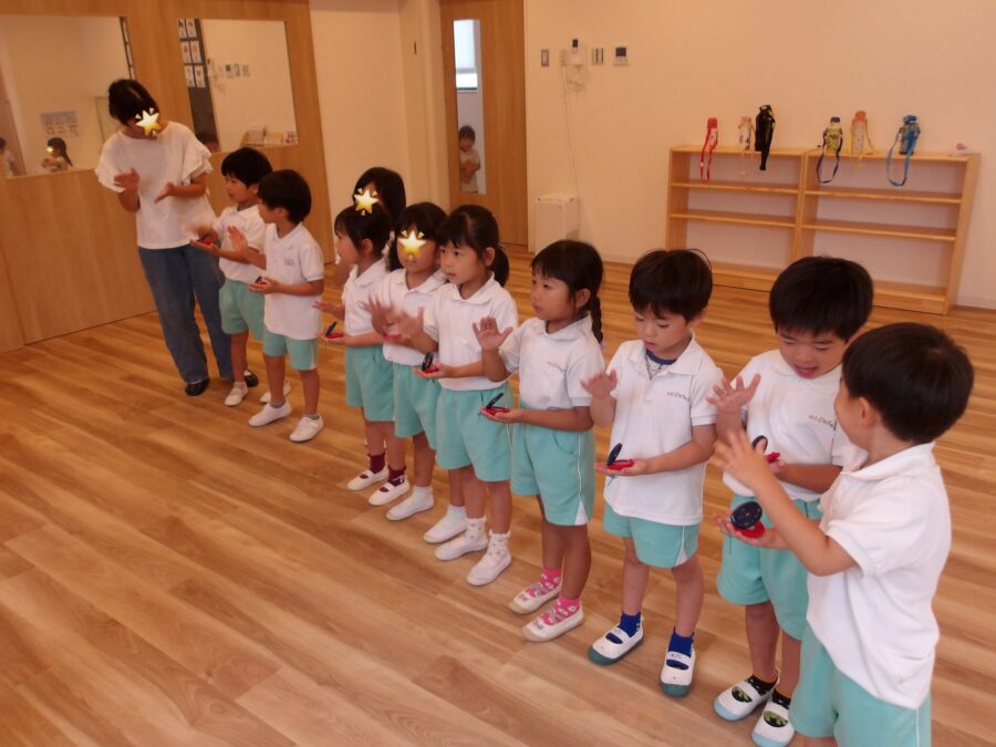 〈おばけなんてないさ〉を歌いながら、カスタネットを演奏しました。