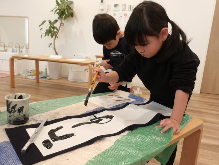 そら・にじ組が墨あそび、書き初めを行いました。
