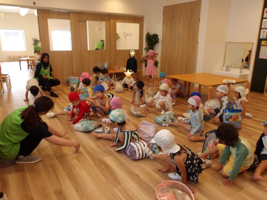 以前から楽しみにしていた子どもたちだったので、ENGLISH TIMEが終わるとすぐにプールの用意を持つ姿も、、、🤭