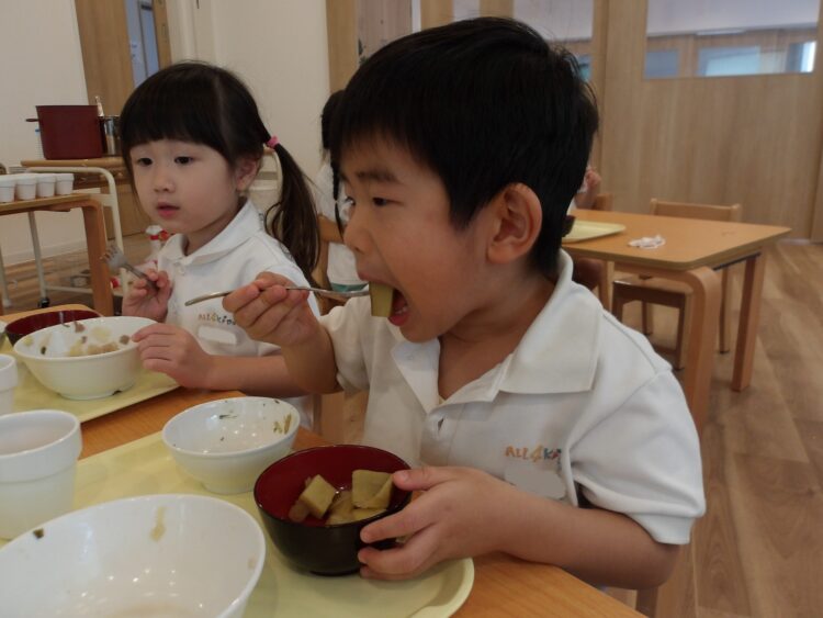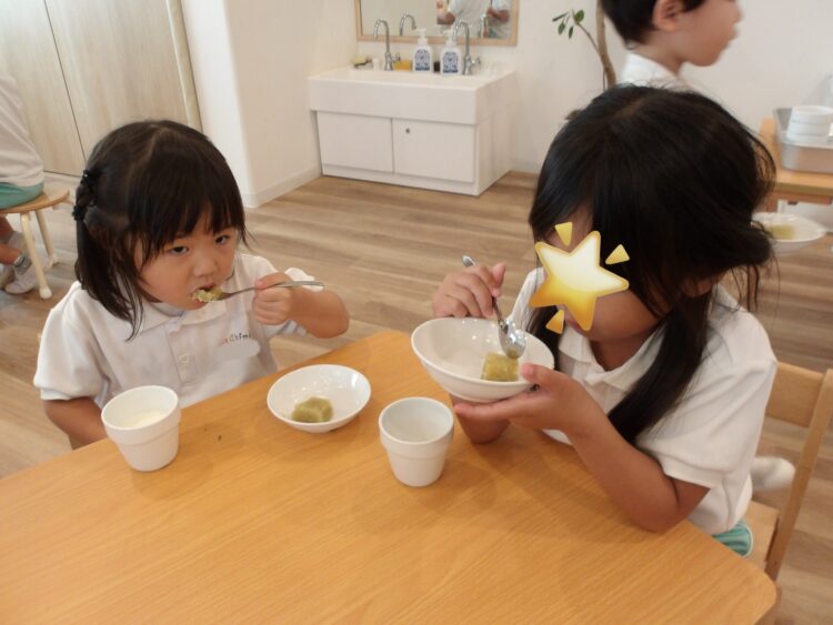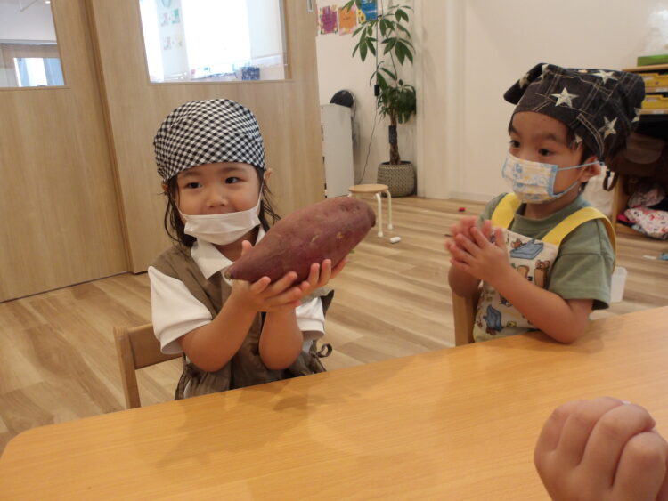 おやつの時間になると、そら組も「お芋早く食べたい〜!」と芋ようかんを見つめていました。