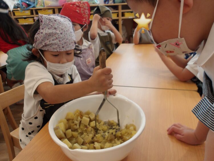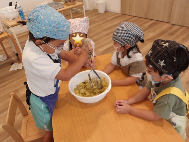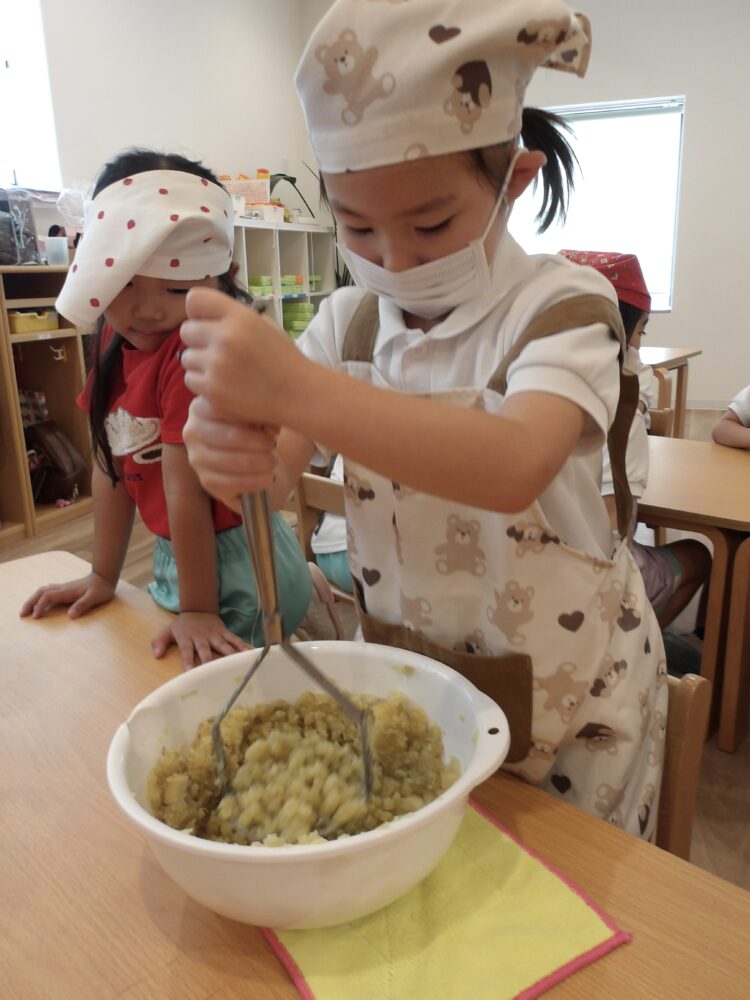 昨年度もマッシャーを使ったことを覚えていて、「それ前使ったやつだー!」と張り切ってお芋を潰していましたよ。