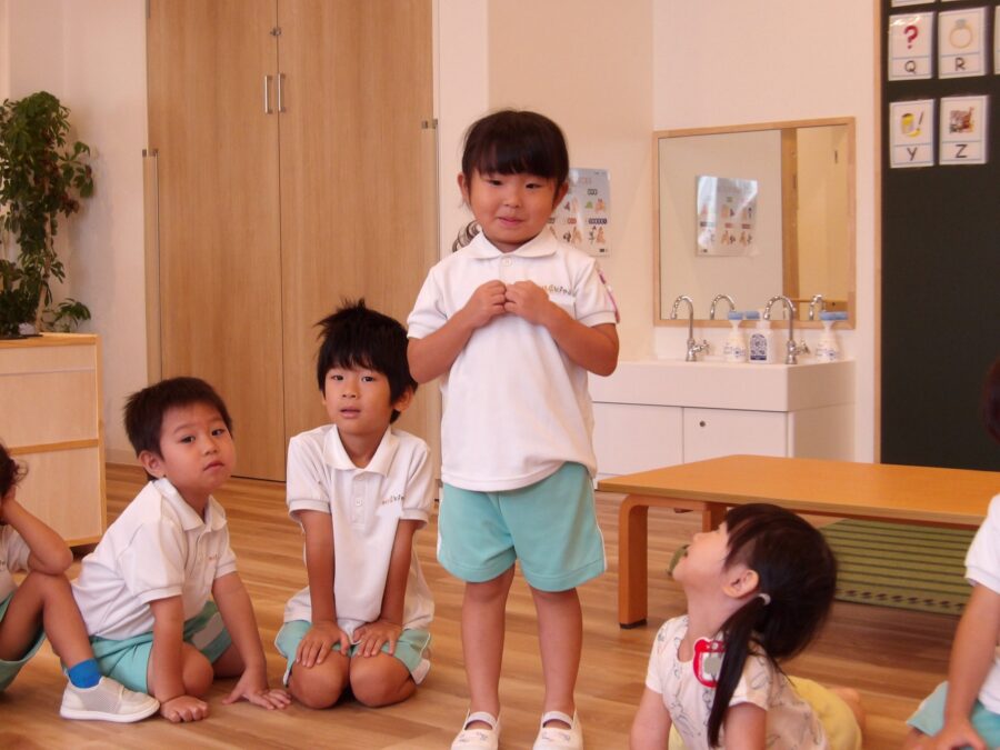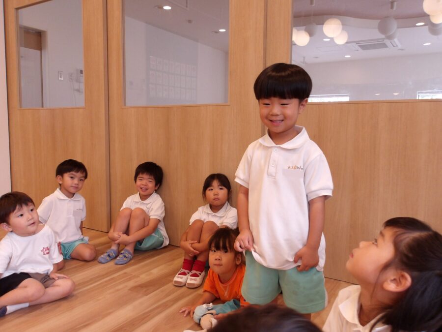 発表ができなかった子も朝の会が終わった後に「お泊まりしたんだよ」「お祭り行ったよ〜!」と保育者の元へ教えに来てくれました。
