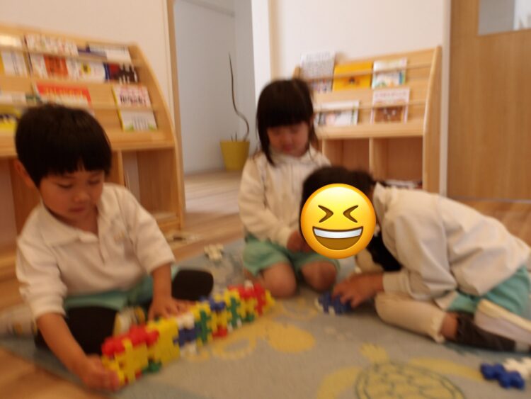 こっちではブロック遊び! 皆んなで協力して大きな電車を作っていました🚃