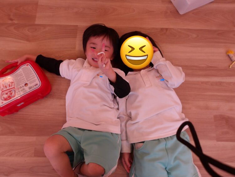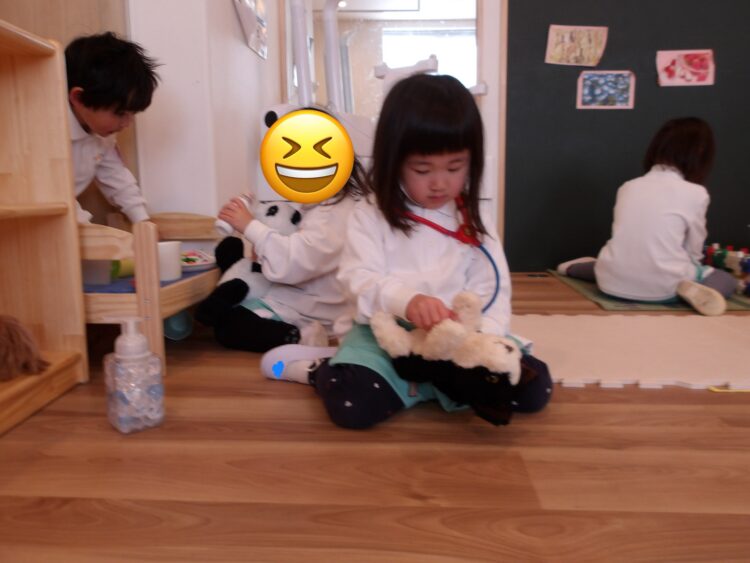 まずはお絵描きお友だちと仲良くお話しをしながらお絵描きを楽しんでいましたこっちではお医者屋さんごっこをして楽しんでいました!