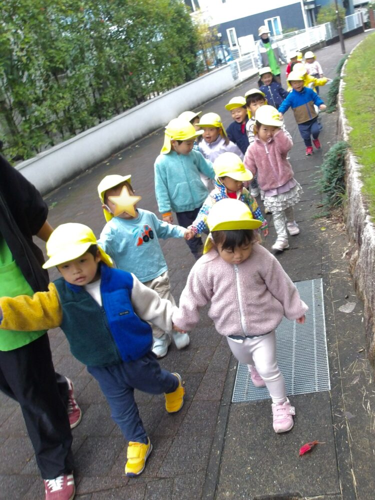 うさぎ組は明日のピクニックに向けて、お友だちと歩く練習をしました。