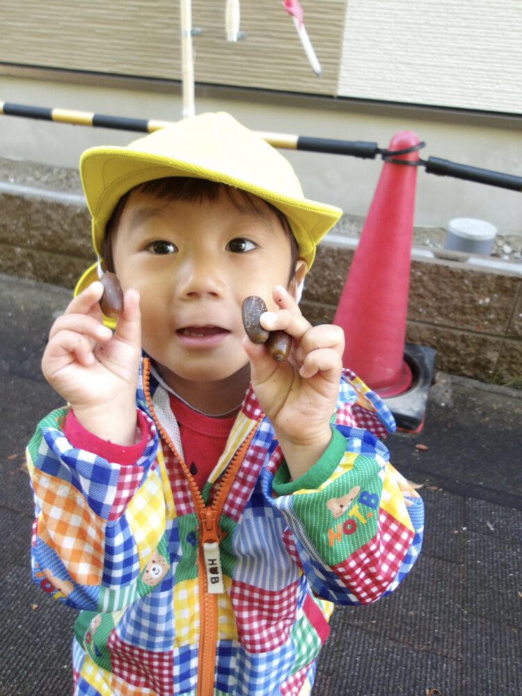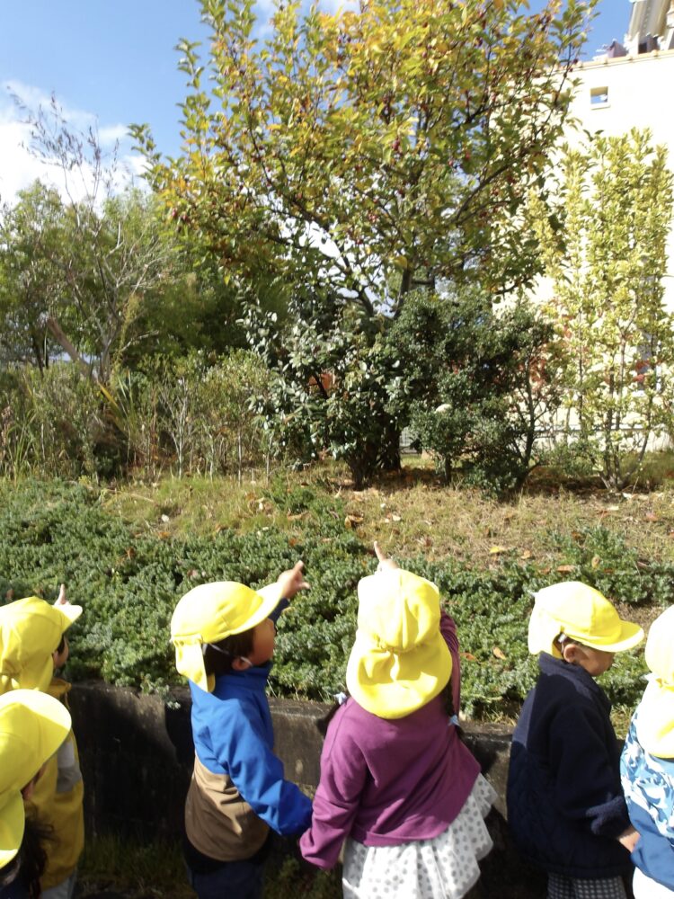 道中ではさくらんぼや金木犀、ドングリやシャリンバイなど、季節ならではの自然物を発見し、散策を楽しみました。