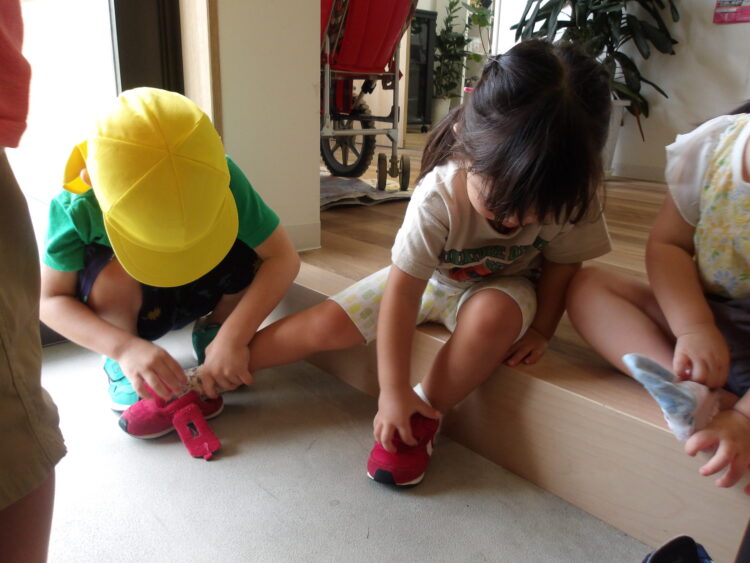 うさぎ組も靴を履いて出発!自分でできるかな?