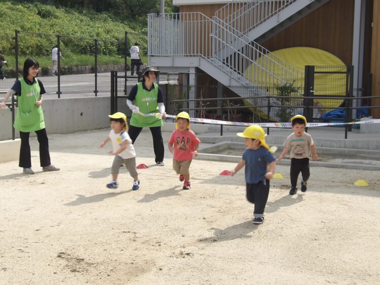 さて、いよいよスタートです!ルールをよく聞いていたお友だち。みんなニコニコで走り始めました!ゴール目指して一直線!