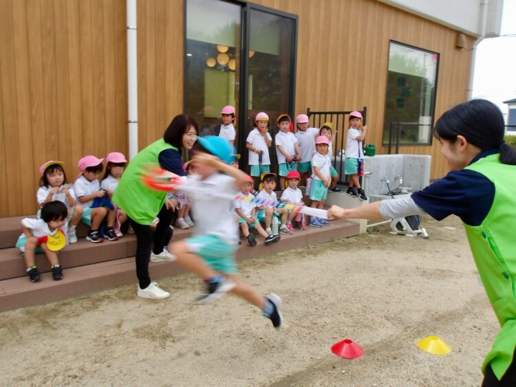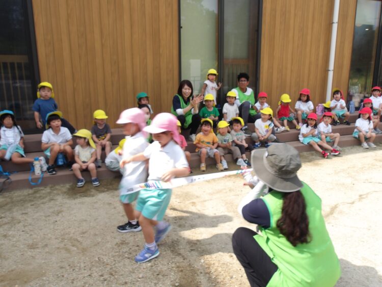 テラスからは、元気な応援の声が聞こえてきます。「がんばれー!がんばれー!👏🏻」と一生懸命応援してくれました。