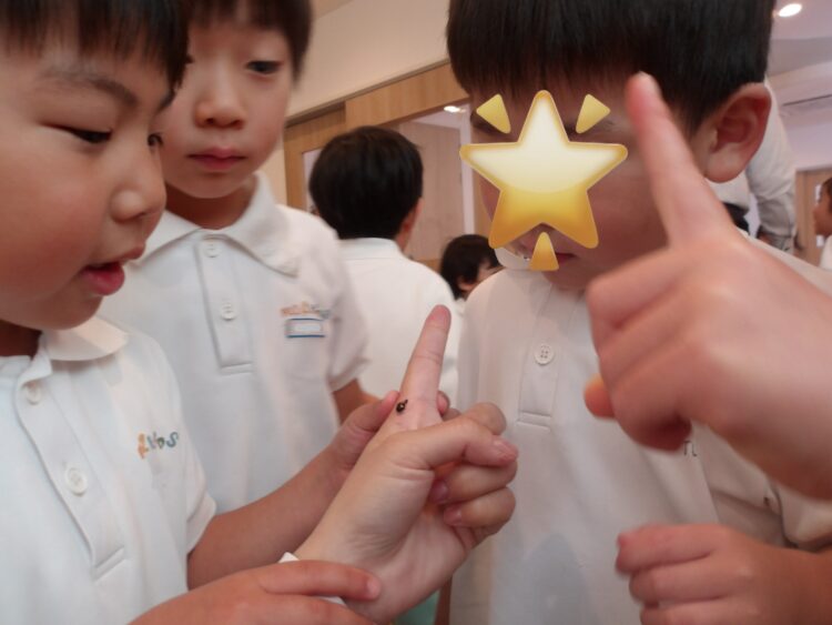 いろいろなものが保育園の中を逃げていて、見つけては大興奮な子どもたちでした。
