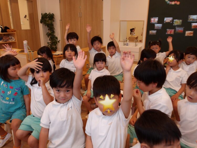 近所で行われていたお祭りに行った子が多く、お祭りに行った人に手を挙げてもらうと、ほとんどの子がお祭りに行っていました🤭